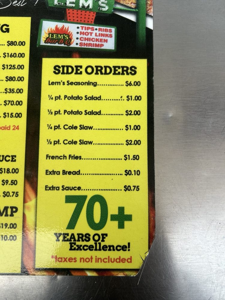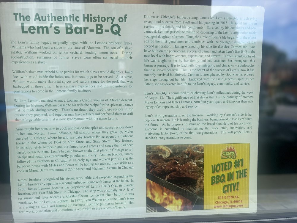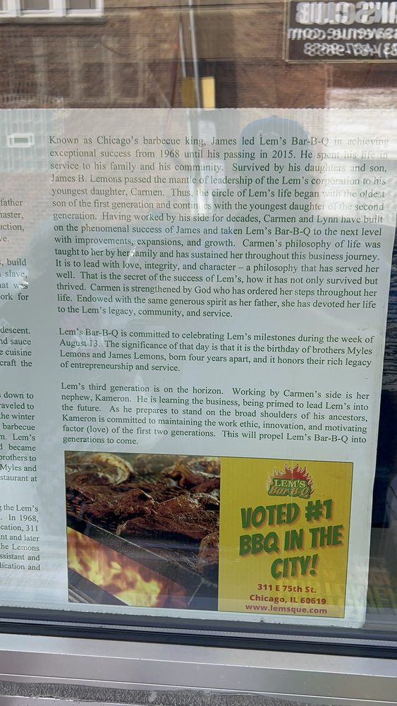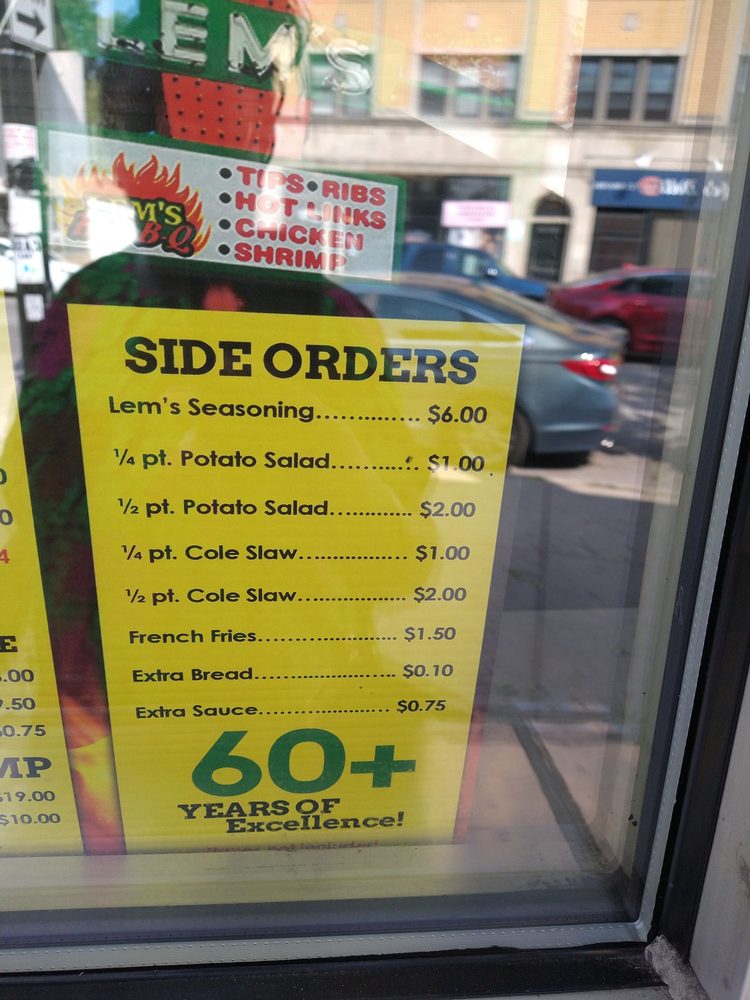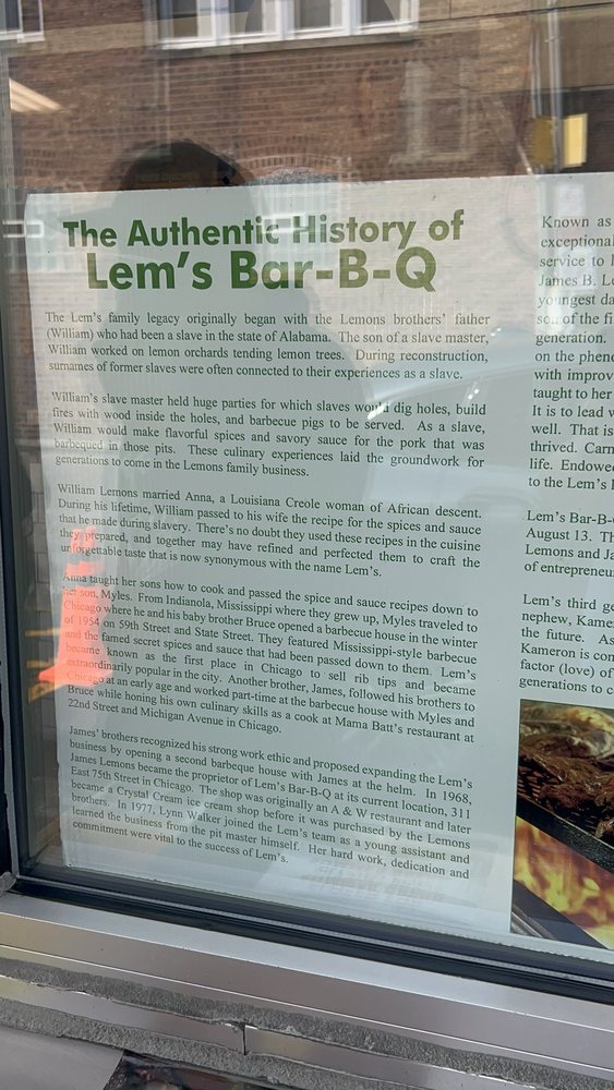 Lem's Bar-B-Q, located in Chicago, is a neighborhood gem offering delicious barbecued center cut ribs and hot links. Customers rave about the flavorful rib tips and chicken wings, highlighting the quality of the meat and outstanding flavor. The JBL special allows patrons to sample a variety of menu items, with generous portions worth the price. While the wait time can be long, the food is well worth it, with the ribs standing out as a must-try dish. The friendly staff and lively atmosphere make for an enjoyable dining experience. Lem's Bar-B-Q is a staple in the community and a top pick for BBQ enthusiasts looking for authentic flavors and a memorable meal.